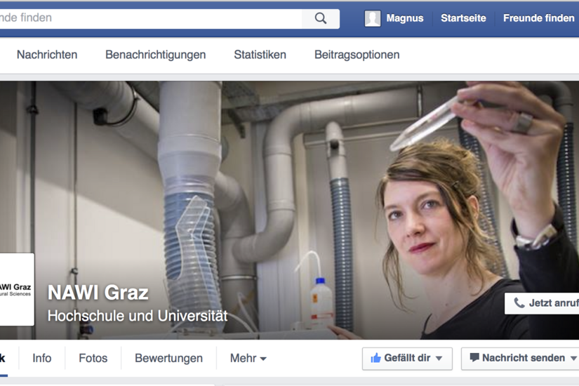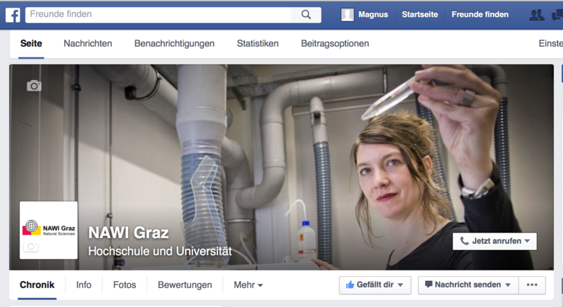 Wir laden Sie herzlich ein, die NAWI Graz Facebook-Seite zu besuchen. Per Klick auf "gefällt mir" bleiben Sie am NAWI Graz Puls der Zeit!