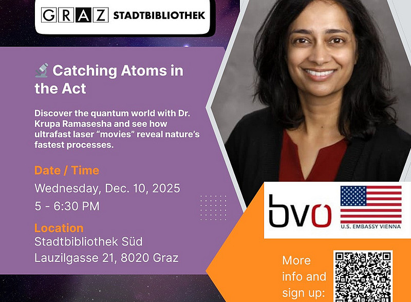 Dr. Krupa Ramasesha is a chemist and research scientist at Sandia National Laboratories in Livermore, California. She was selected by the U.S. Department of State as a Fulbright U.S. Scholar to Austria for the 2025–2026 academic year and currently serves as the Fulbright-NAWI Graz Visiting Professor in the Natural Sciences at the Institute of Experimental Physics, Graz University of Technology. In her research, she uses ultrafast laser spectroscopy to capture the “fingerprints” of highly reactive molecular species and to study ultrafast processes on femtosecond to picosecond timescales – work that spans gas-phase photochemistry, interfacial charge and energy transfer, and molecular materials.
